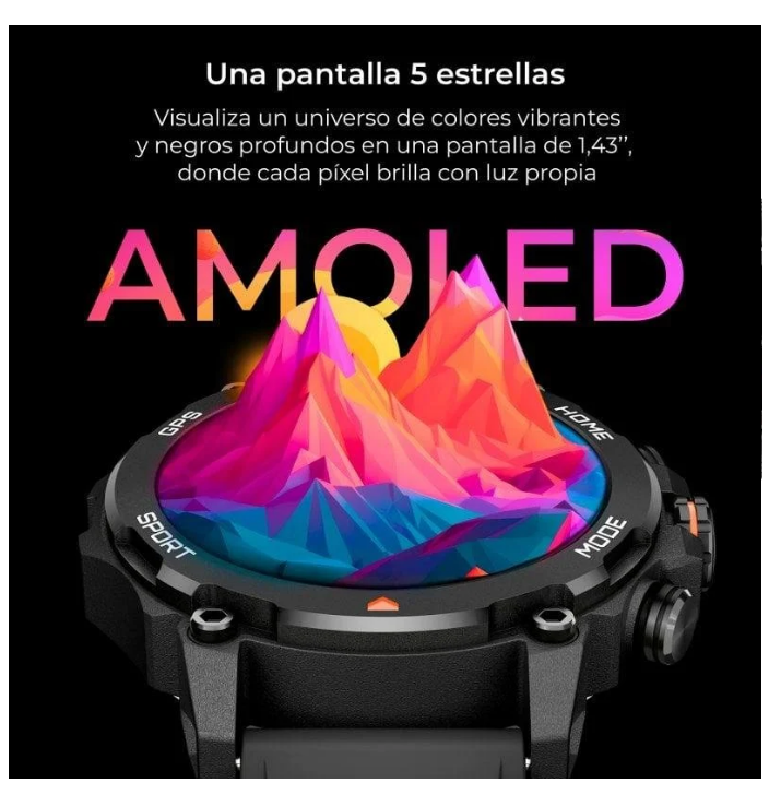 El KSIX Explorer es el reloj inteligente definitivo para usuarios que buscan rendimiento y fiabilidad en entornos exigentes, tanto en montaña como en el día a día profesional o deportivo. Su pantalla AMOLED de 1,43" multitáctil ofrece una visualización brillante incluso bajo luz solar directa, facilitando la consulta de notificaciones, rutas y parámetros de entrenamiento de manera intuitiva.